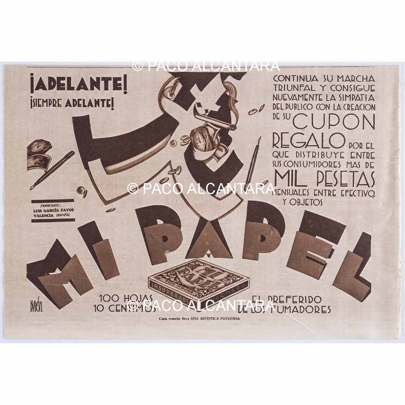 Título: Anuncio del papel de fumar “Mi Papel”